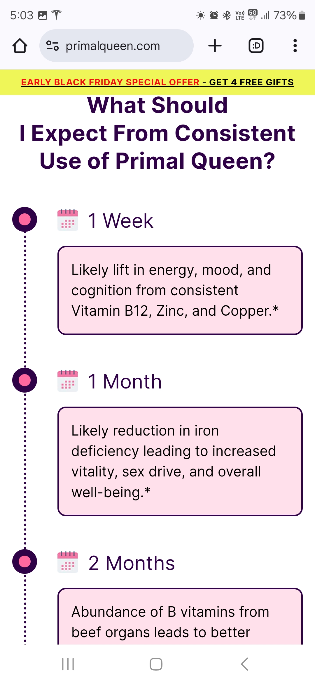 Create a section where we can show how soon you'll notice an effect in a time line way as attached below